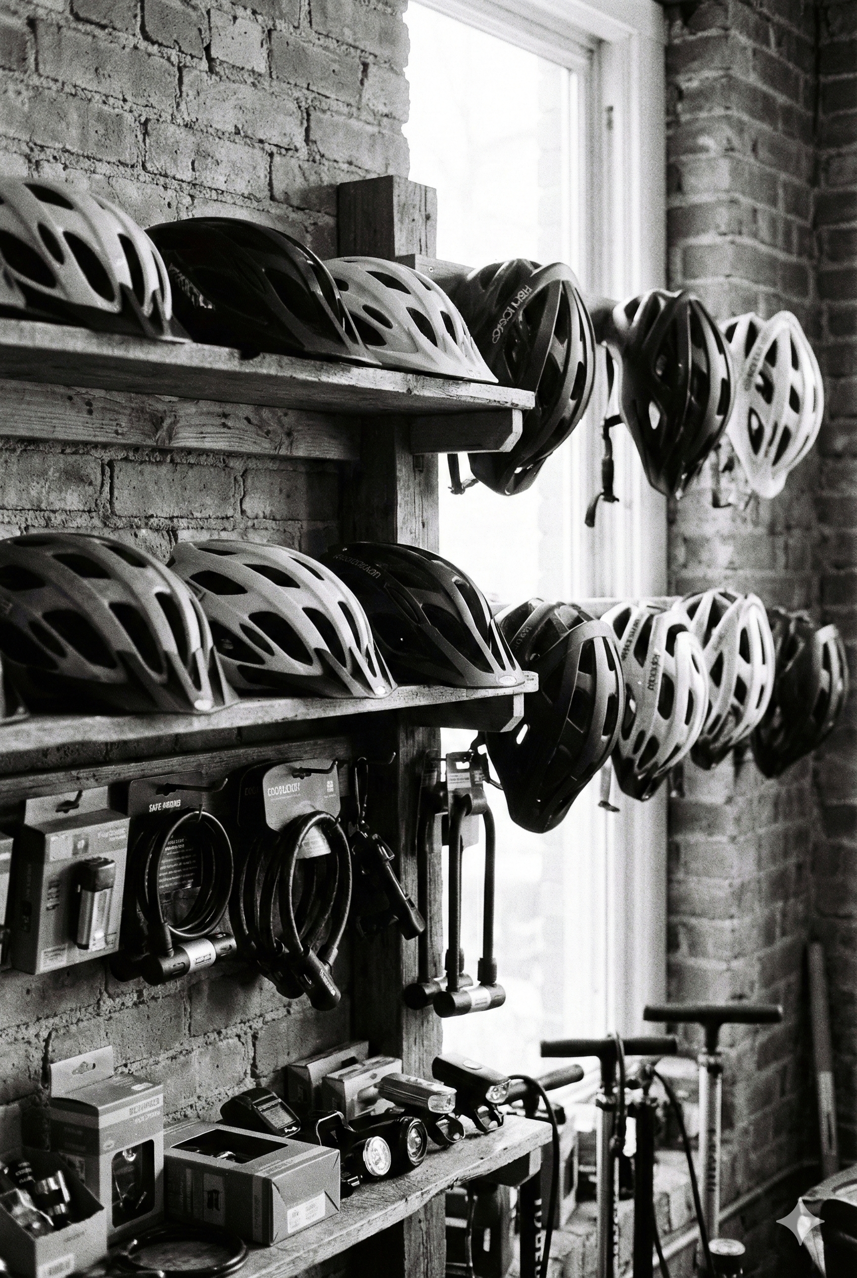 Große Auswahl an Ersatzteilen, Schlössern und Helmen direkt vor Ort.
